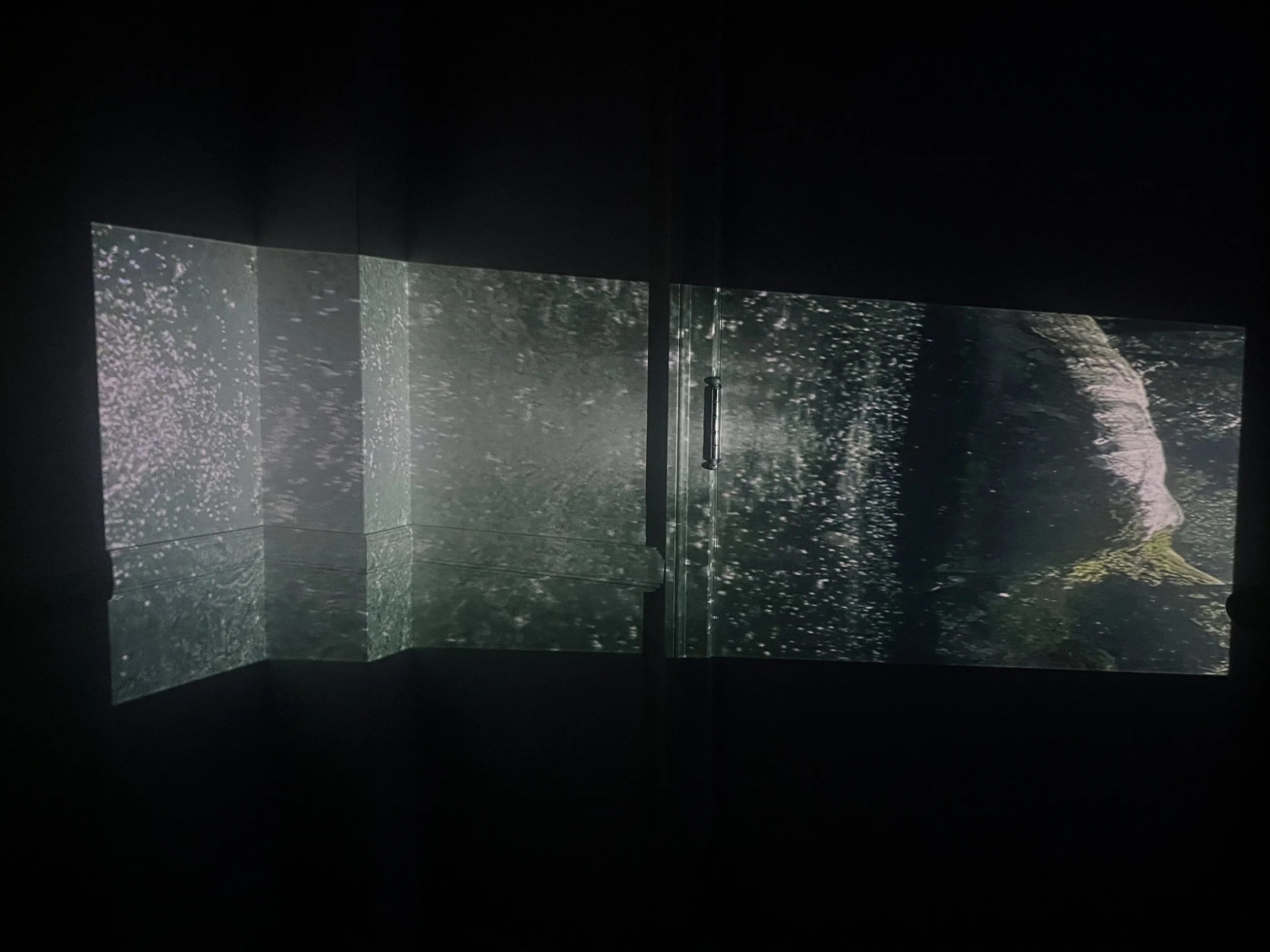 Step inside a shifting waterscape, where a recorded voice ripples among projected surfaces. The theory of water having memory becomes an experiential metaphor: carrying stories, loss, and renewal across distance and time. More than a reading of poems, it is a journey: like entering a canoe of sound and light, where each body present is carried into the current.